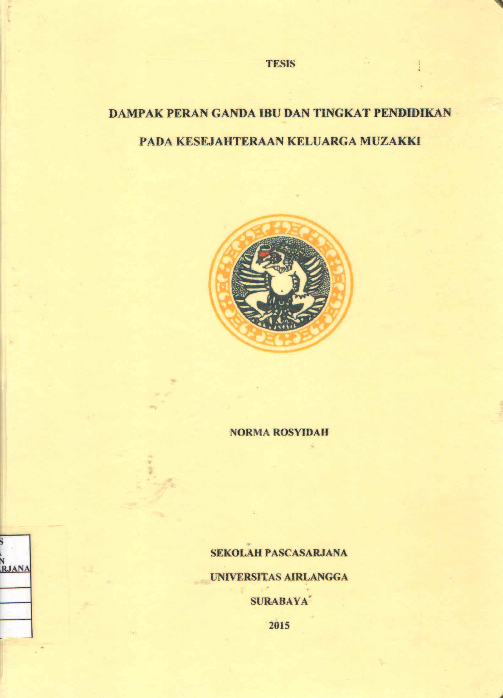 | Judul | Dampak Peran Ganda Ibu dan Tingkat Pendidikan Pada Kesejahteraan Keluarga Muzakki / Norma Rosyidah |