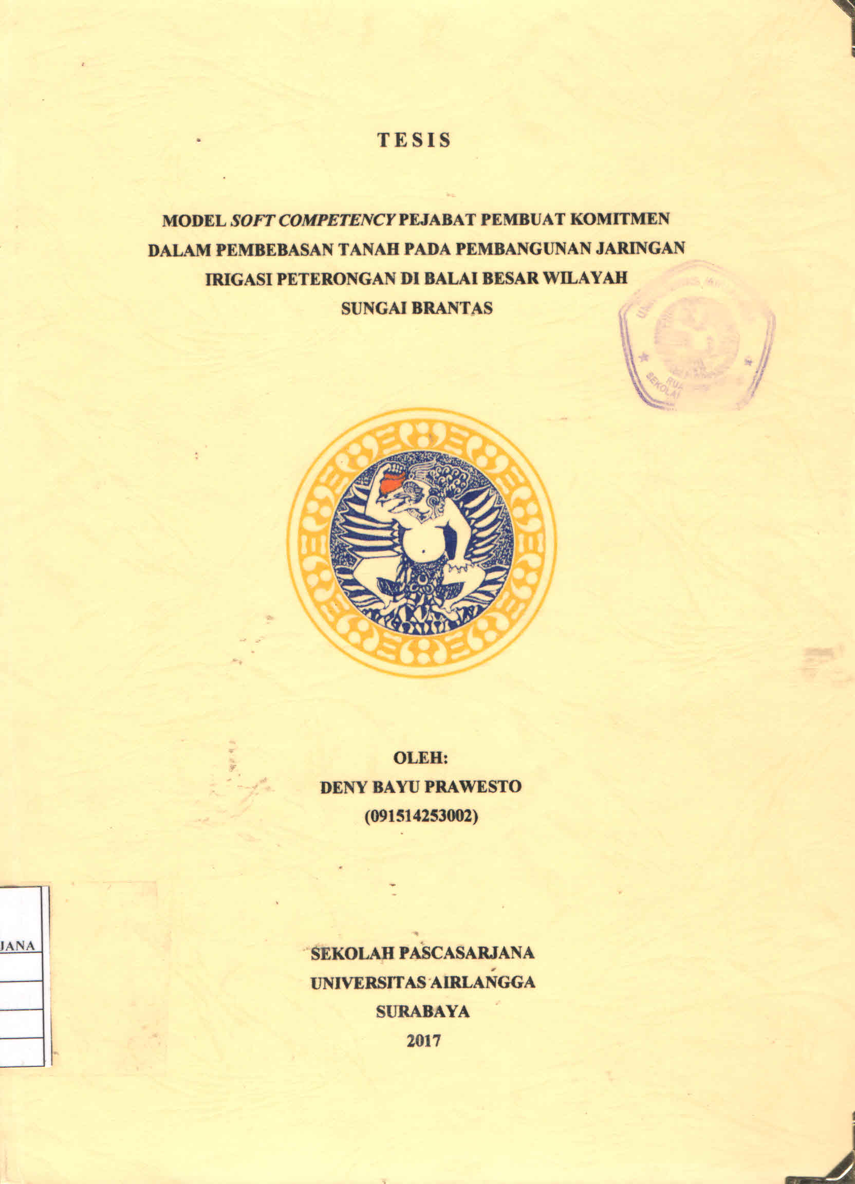 | Judul | Model Soft Competency Pejabat Pembuat Komitmen dalam Pembebasan Tanah pada Pembangunan Jaringan Irigasi Peterongan di Balai Besar Wilayah Sungai Brantas / Deny Bayu Prawesto |