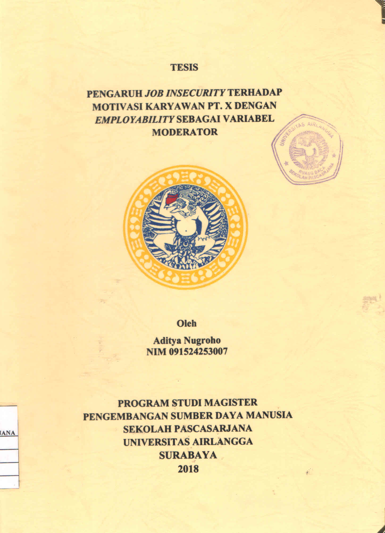 | Judul | Pengaruh Job Insecurity Terhadap Motivasi Karyawan PT. X dengan Employability Sebagai Variabel Moderator / Aditya Nugroho |