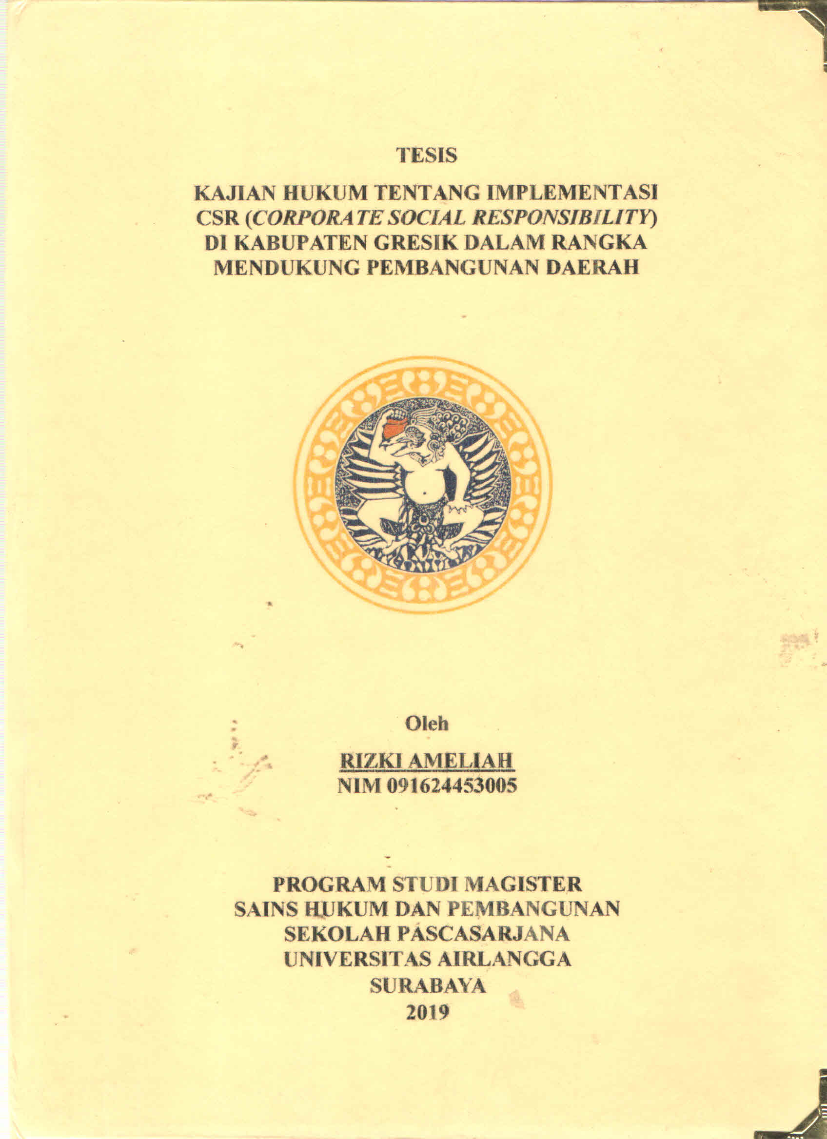 | Judul | Kajian Hukum Tentang Implementasi CSR (Corporate Social Responsibility) di Kabupaten Gresik dalam Rangka Mendukung Pembangunan Daerah / Rizki Ameliah |