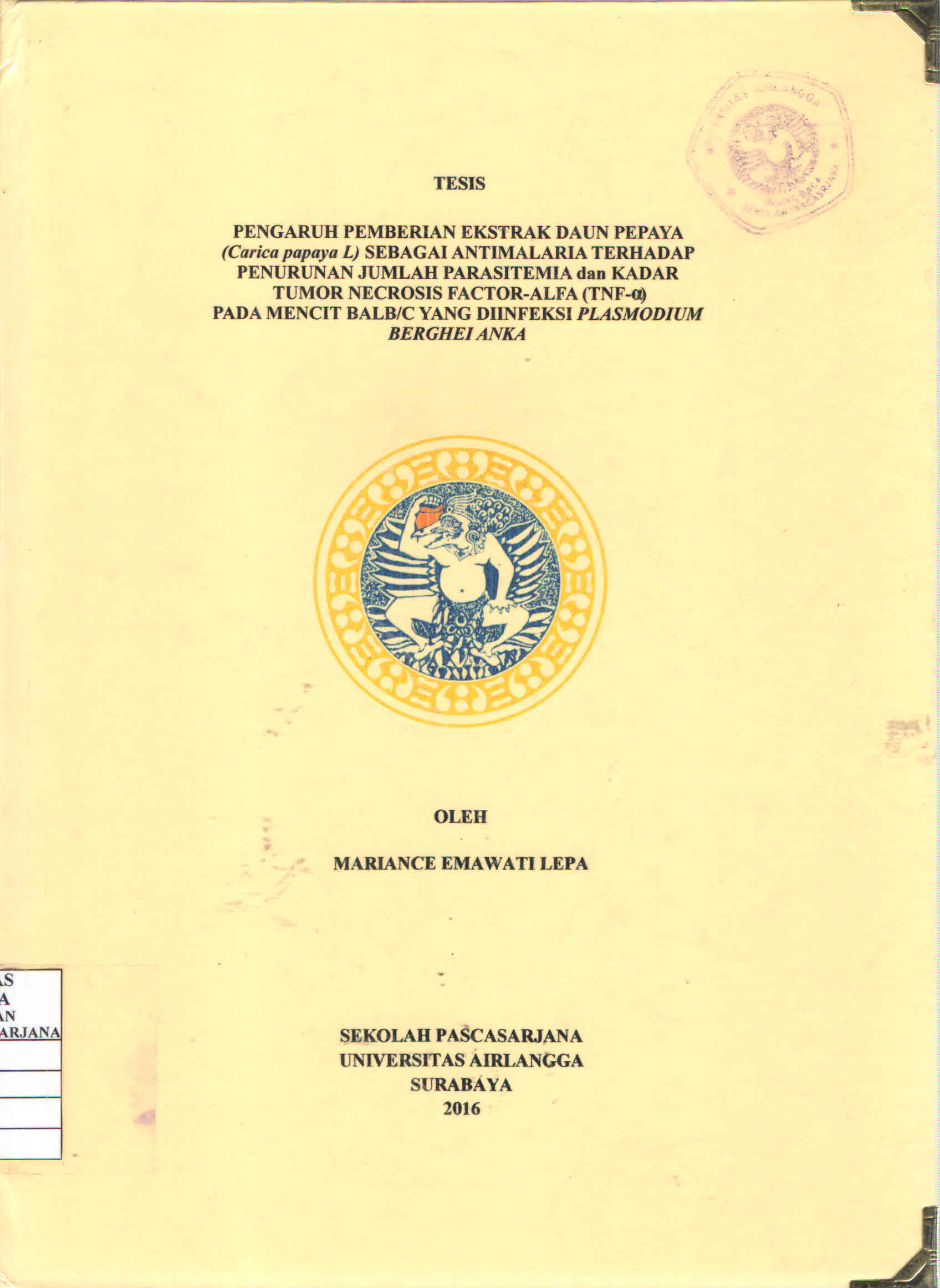 | Subjek | Imunologi Ekstrak Daun Pepaya Antimalaria Jumlah Parasitemia Kadar Tumor Necrosis Factor-Alfa (TNF-?) Plasmodium Berghei Anka |