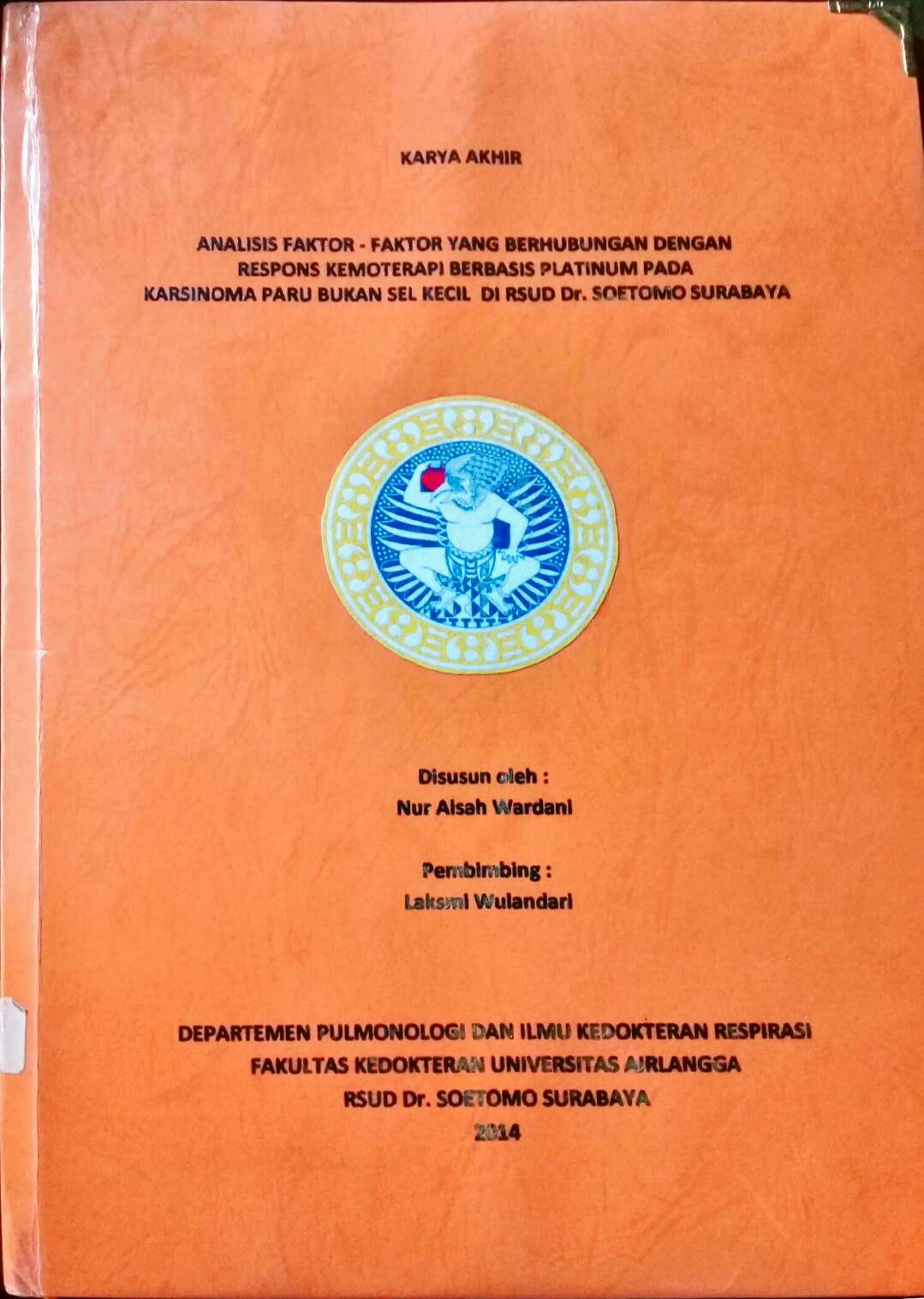 | Judul | Analisis Faktor-Faktor Yang Berhubungan Dengan Respons Kemoterapi Berbasis Platinum Pada Karsinoma Paru Bukan Sel Kecil di RSUD Dr.Soetomo Surabaya / Nur Aisah Wardani |