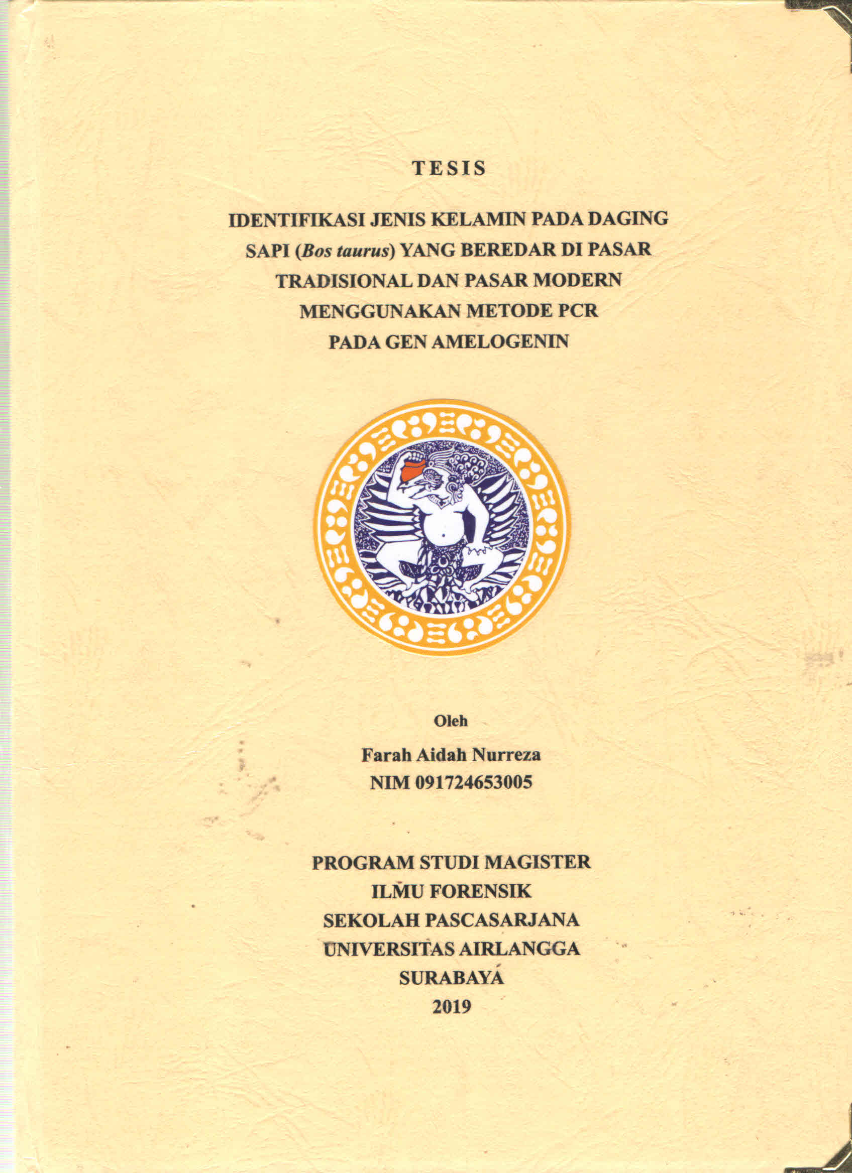 | Subjek | S2 Ilmu Forensik Identifikasi Jenis Kelamin Daging Sapi Pasar Tradisional Pasar Modern Metode PCR Gen Amelogenin |