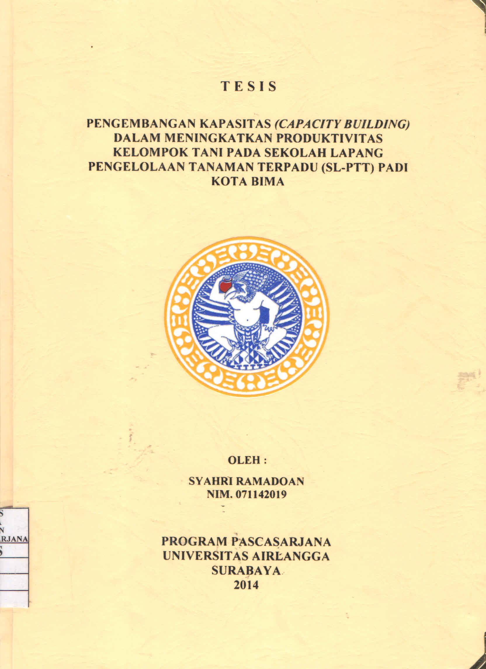 | Judul | Pengembangan Kapasitas (Capacity Building) dalam Meningkatkan Produktivitas Kelompok Tani pada Sekolah Lapang Pengelolaan Tanaman Terpadu (SL-PTT) Padi Kota Bima / Syahri Ramadoan |