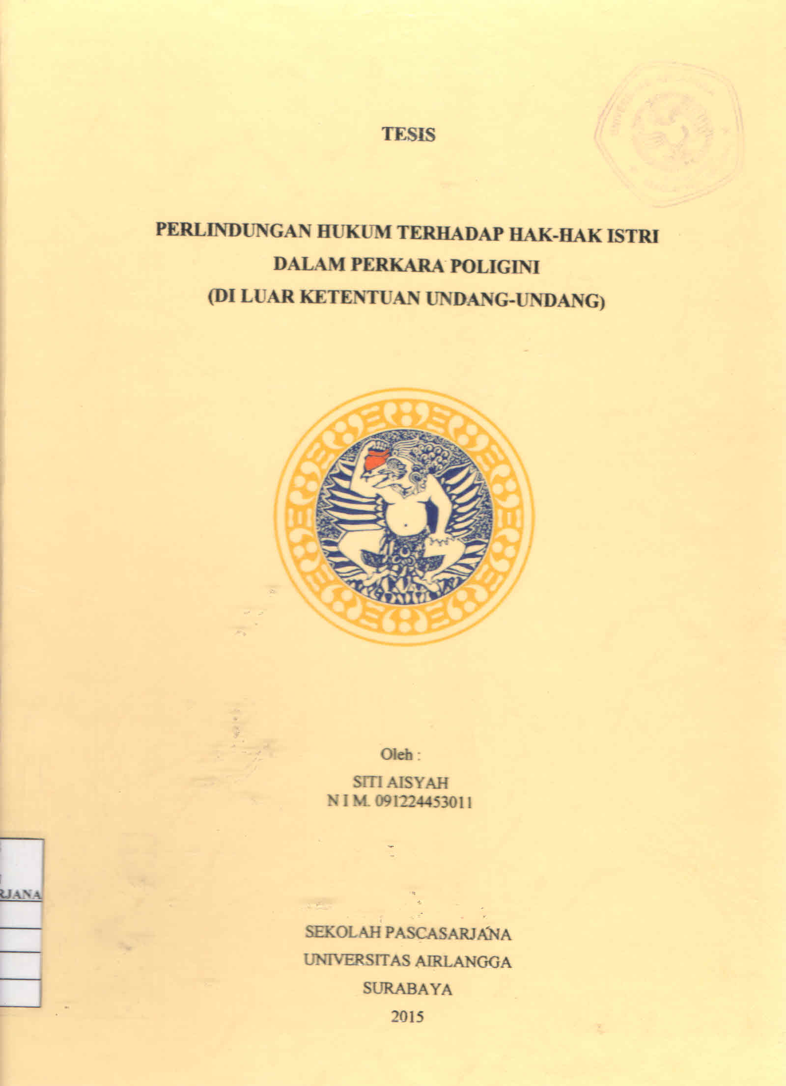 | Judul | Perlindungan Hukum terhadap Hak-hak Istri dalam Perkara Poligini : Diluar Ketentuan Undang-Undang / Siti Aisyah |