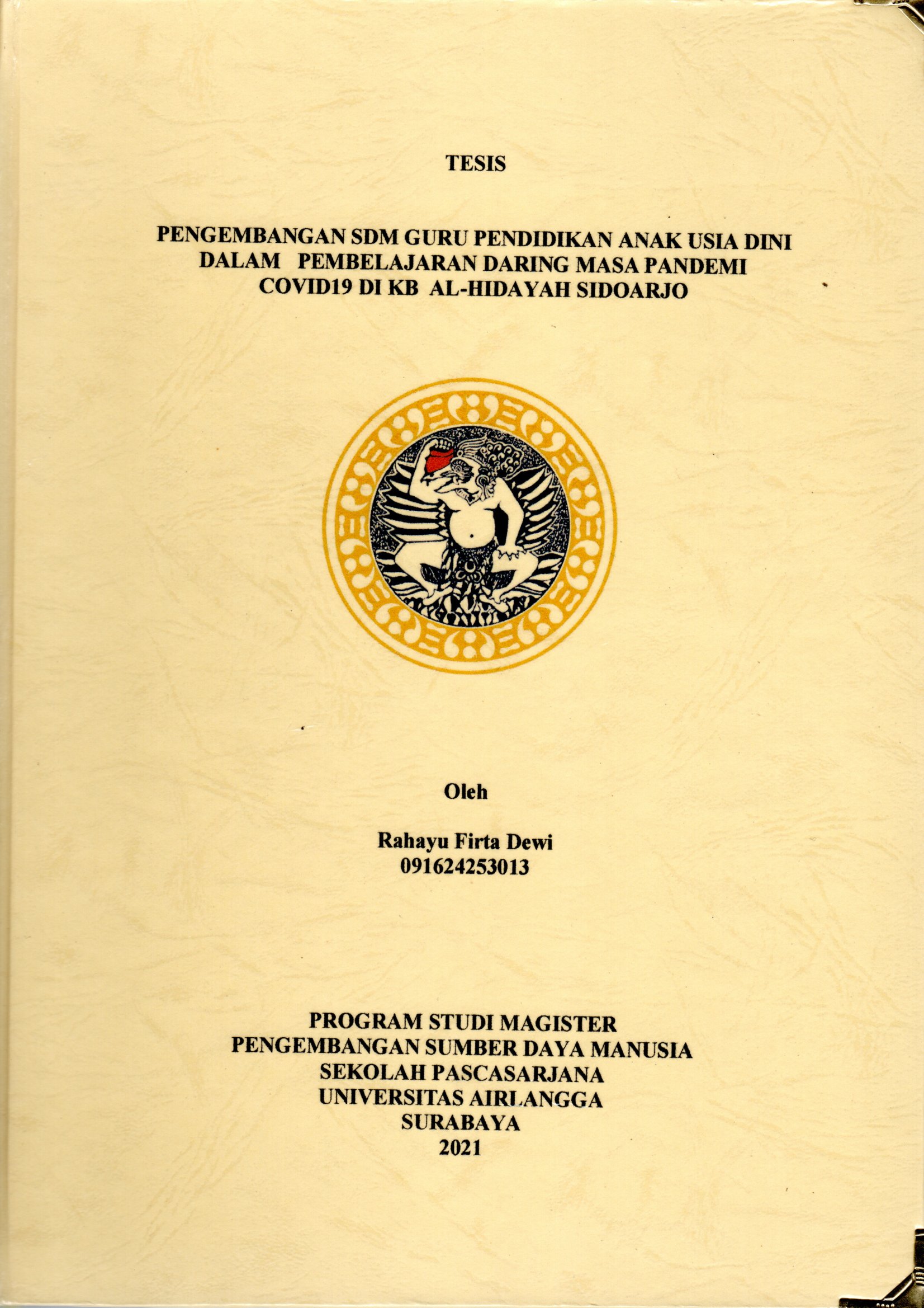 | Judul | Pengembangan SDM Guru Pendidikan Anak Usia Dini dalam Pembelajaran Daring Masa Pandemi Covid-19 di KB Al-Hidayah Sidoarjo / Rahayu Firta Dewi |