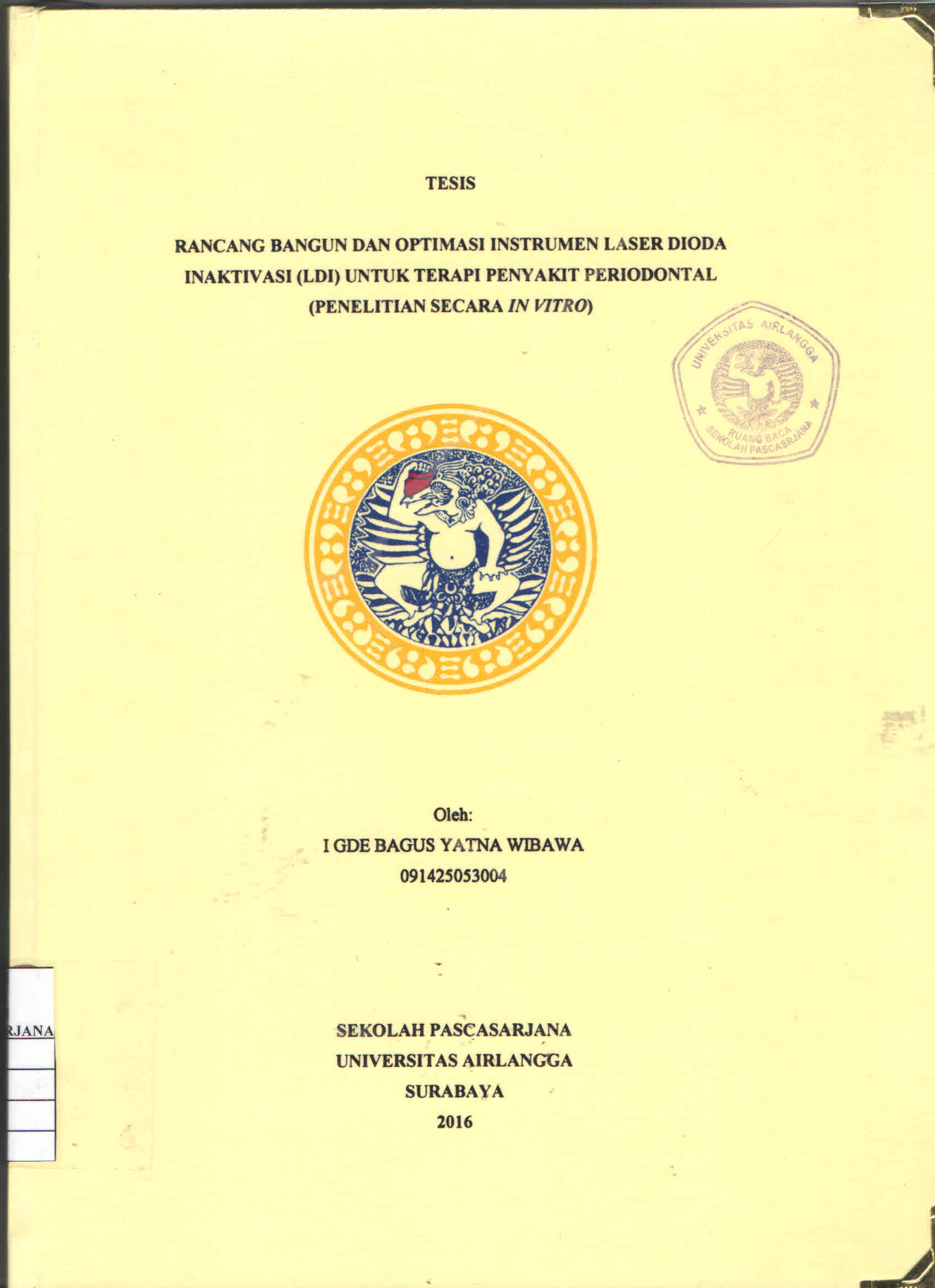| Judul | Rancang Bangun dan Optimasi Instrumen Laser Dioda Inaktivasi (LDI) untuk Terapi Penyakit Periodontal : Penelitian Secara In Vitro / I Gde Bagus Yatna Wibawa |