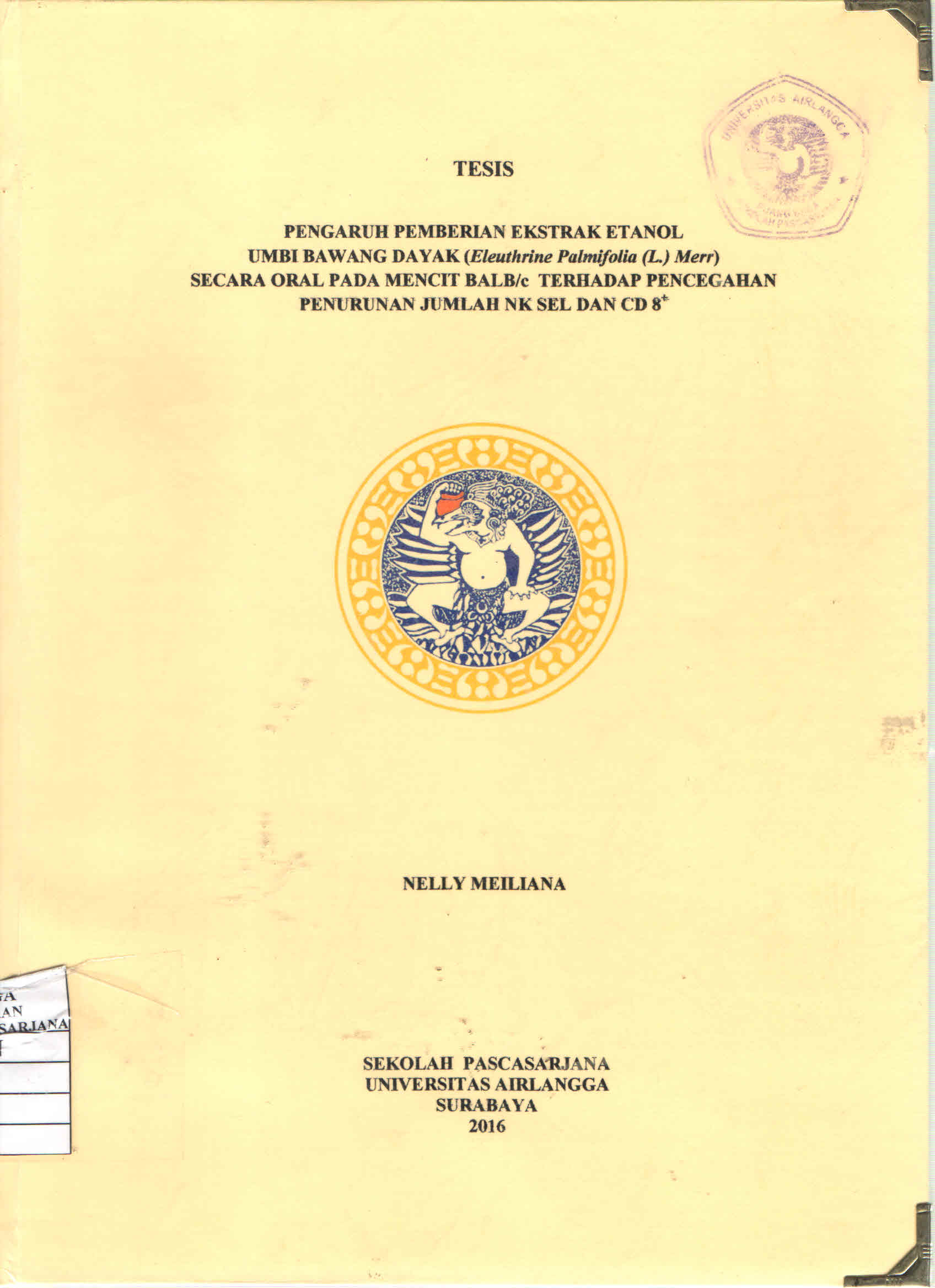 | Judul | Pengaruh Pemberian Ekstrak Etanol Umbi Bawang Dayak (Eleuthrine Palmifolia (L.) Merr) Secara Oral Pada Mencit BALB/c Terhadap Pencegahan Penurunan Jumlah NK Sel dan CD 8+ / Nelly Meiliana |