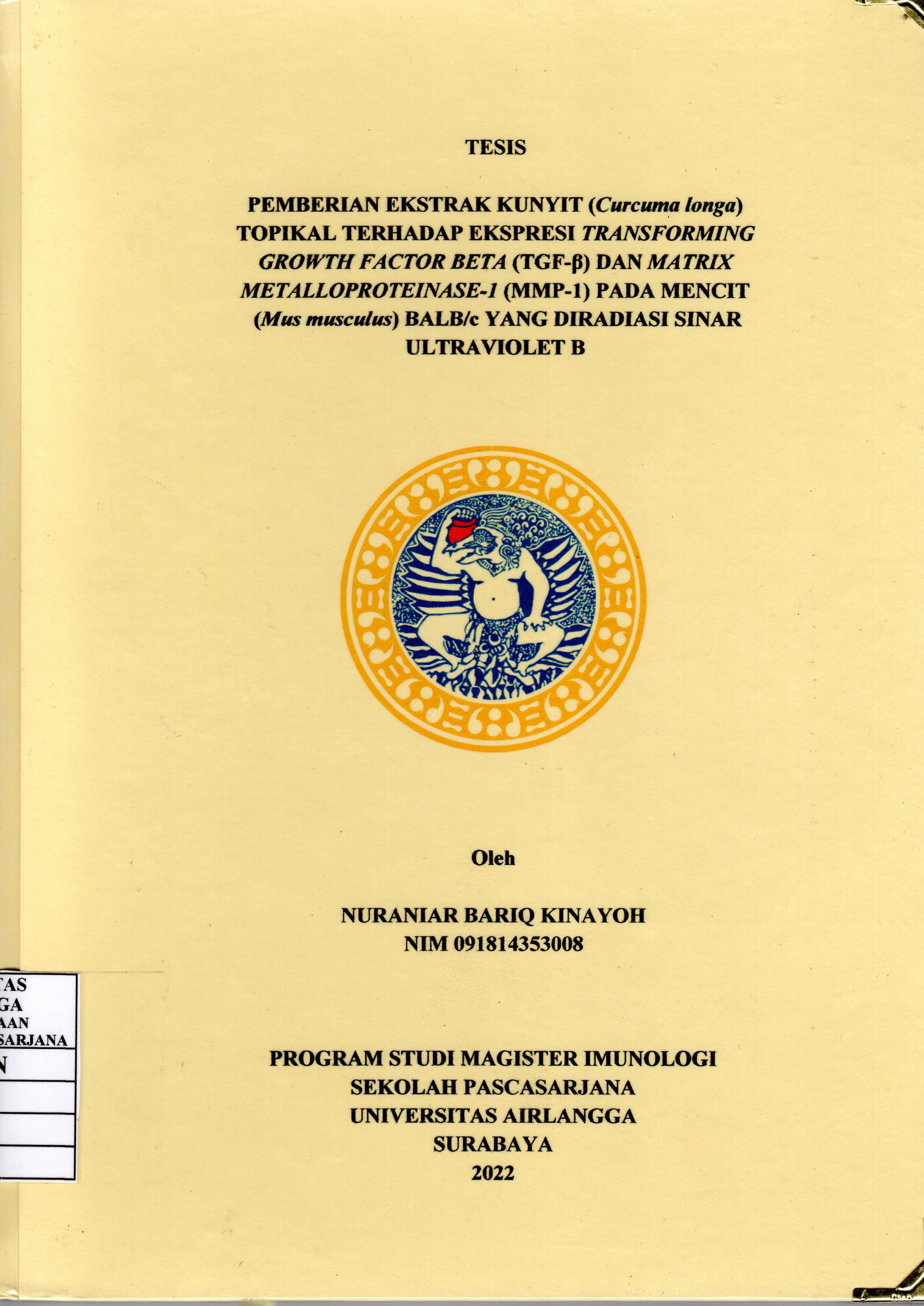 | Subjek | imunologi sinar UVB transforming growth factor beta (TGF-ß) matrix metalloproteinase-1 (MMP-1) ekstrak kunyit |
