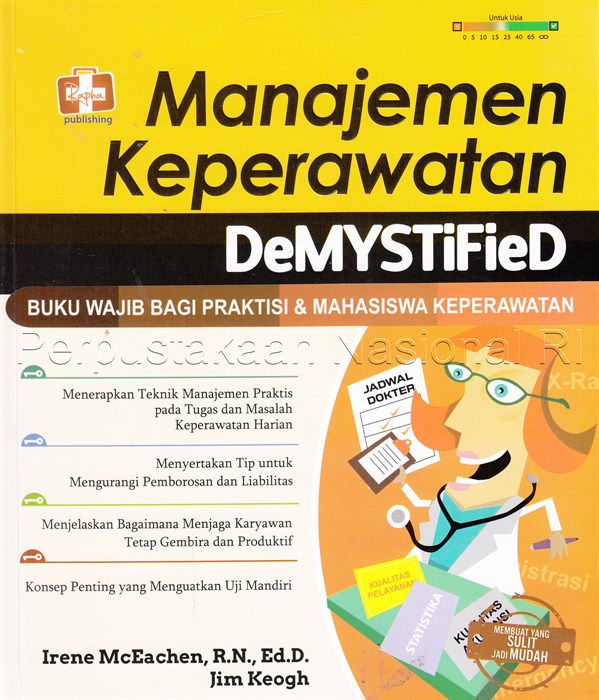 | Judul | Manajemen Keperawatan DeMYSTiFieD : Buku Wajib bagi Praktisi & Mahasiswa Keperawatan / Irene McEachen, Jim Keogh, Editor Niko |