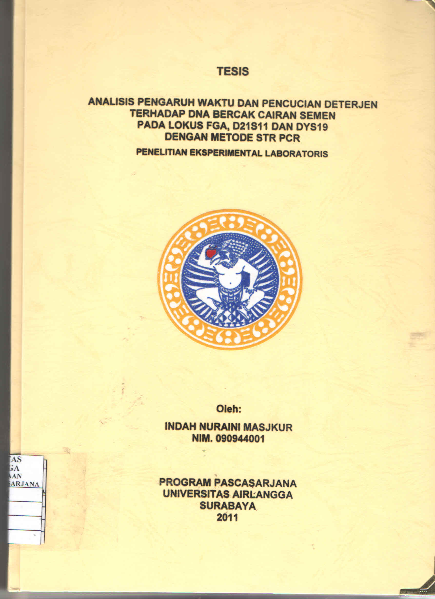 | Judul | Analisis Pengaruh Waktu dan Pencucian Deterjen Terhadap DNA Bercak Cairan Semen pada Lokus FGA, D21S11 dan DYS1 dengan Metode STR PCR : Penelitian Eksperimental Laboratoris / Indah Nuraini Masjkur |