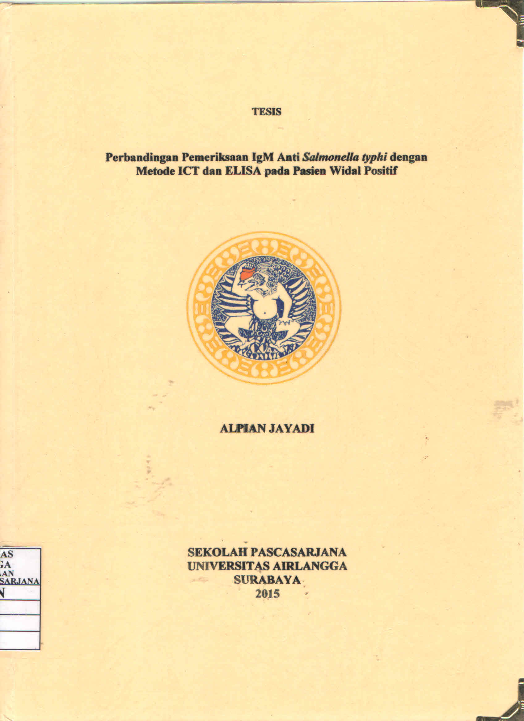 | Judul | Perbandingan Pemeriksaan IgM Anti Salmonella typhi dengan Metode ICT dan ELISA pada Pasien Widal Positif / Alpian Jayadi |