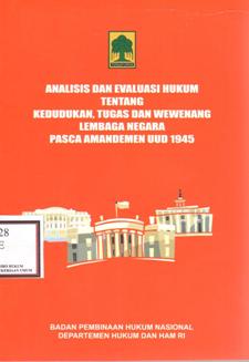 | Judul | Analisis dan Evaluasi Hukum Tentang Kedudukan, Tugas dan Wewenang Lembaga Negara Pasca Amandemen UUD 1945 / Indonesia. Badan Pembinaan Hukum Nasional Departemen Hukum Dan Hak Asasi Manusia RI |