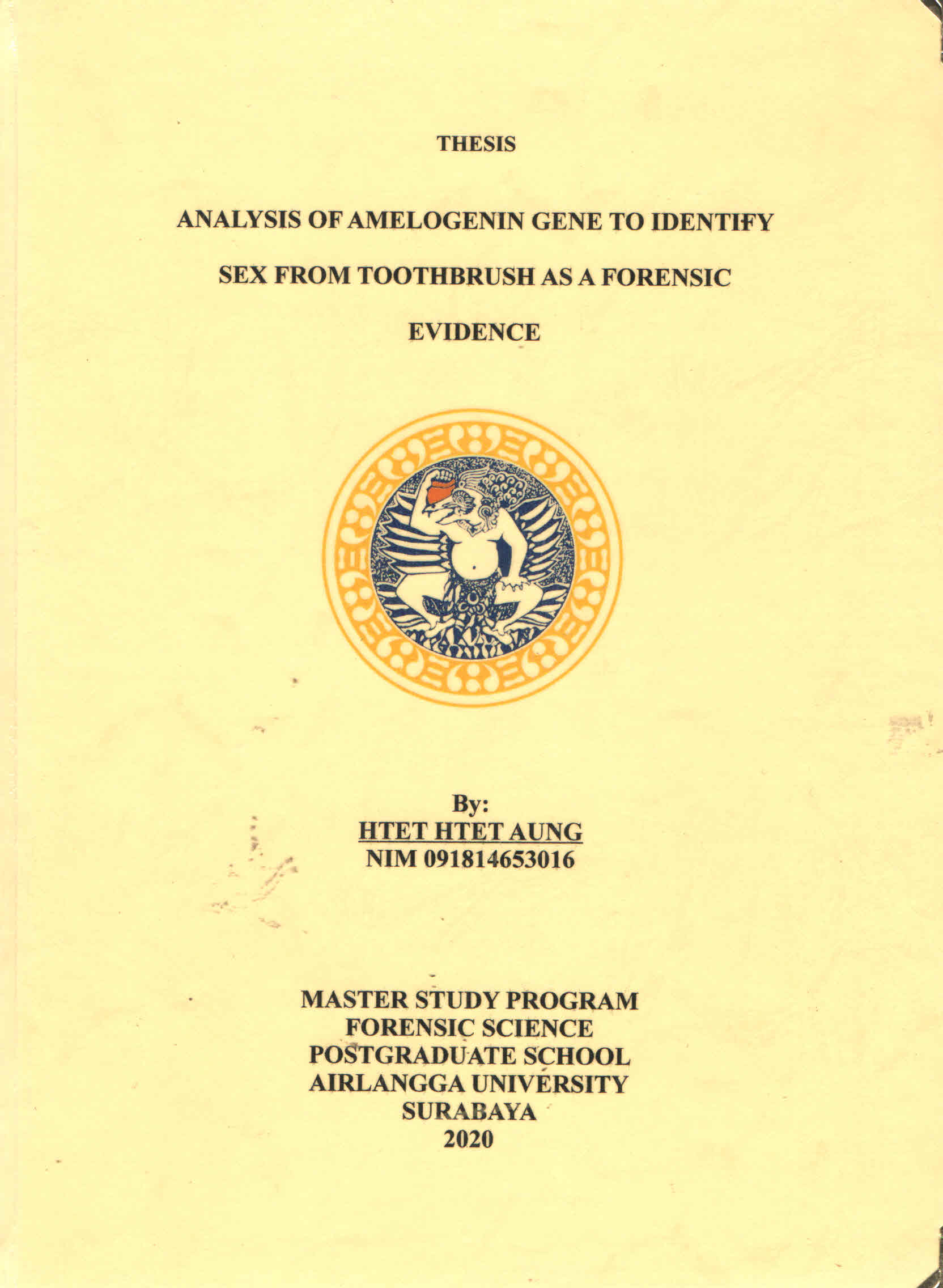 | Judul | Analysis of Amelogenin Gene to Identify Sex from Toothbrush as a Forensic Evidence / Htet Htet Aung |