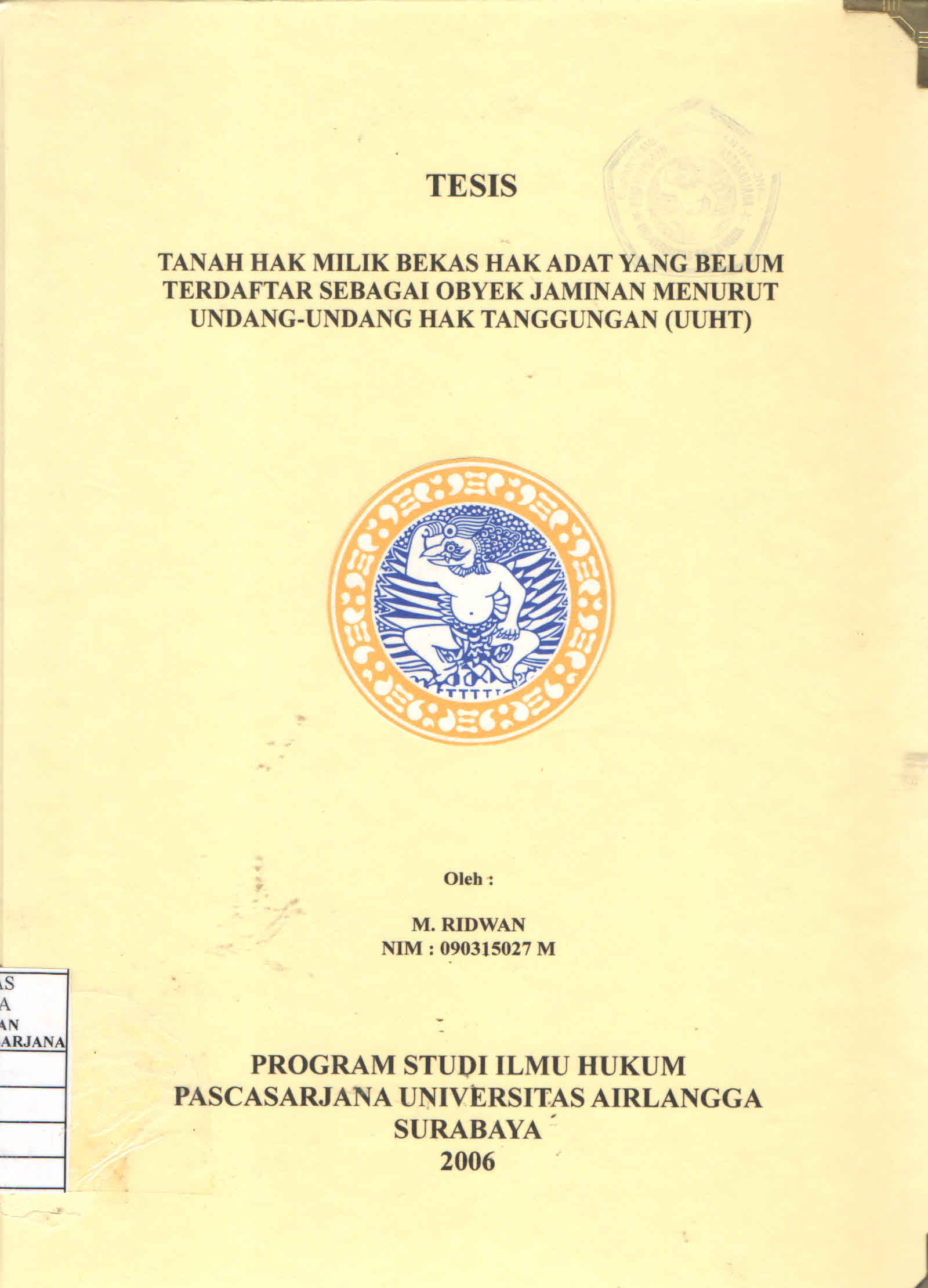 | Judul | Tanah Hak Milik Bekas Hak Adat yang Belum Terdaftar Sebagai Obyek Jaminan Menurut Undang-Undang Hak Tanggungan (UUHT) / M. Ridwan |