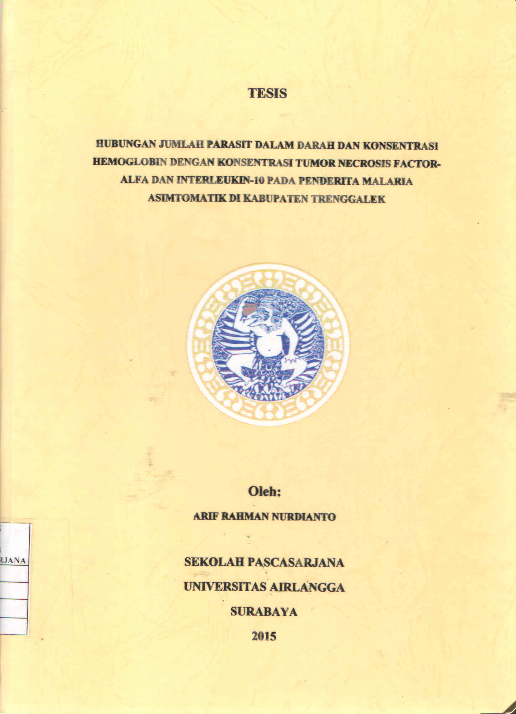 | Judul | Hubungan Jumlah Parasit dalam Darah dan Konsentrasi Hemoglobin dengan Konsentrasi Tumor Necrosis Faktor-Alfa dan Interleukin-10 pada Penderita Malaria Asimtomatik di Kabupaten Trenggalek / Arif Rahman Nurdianto |