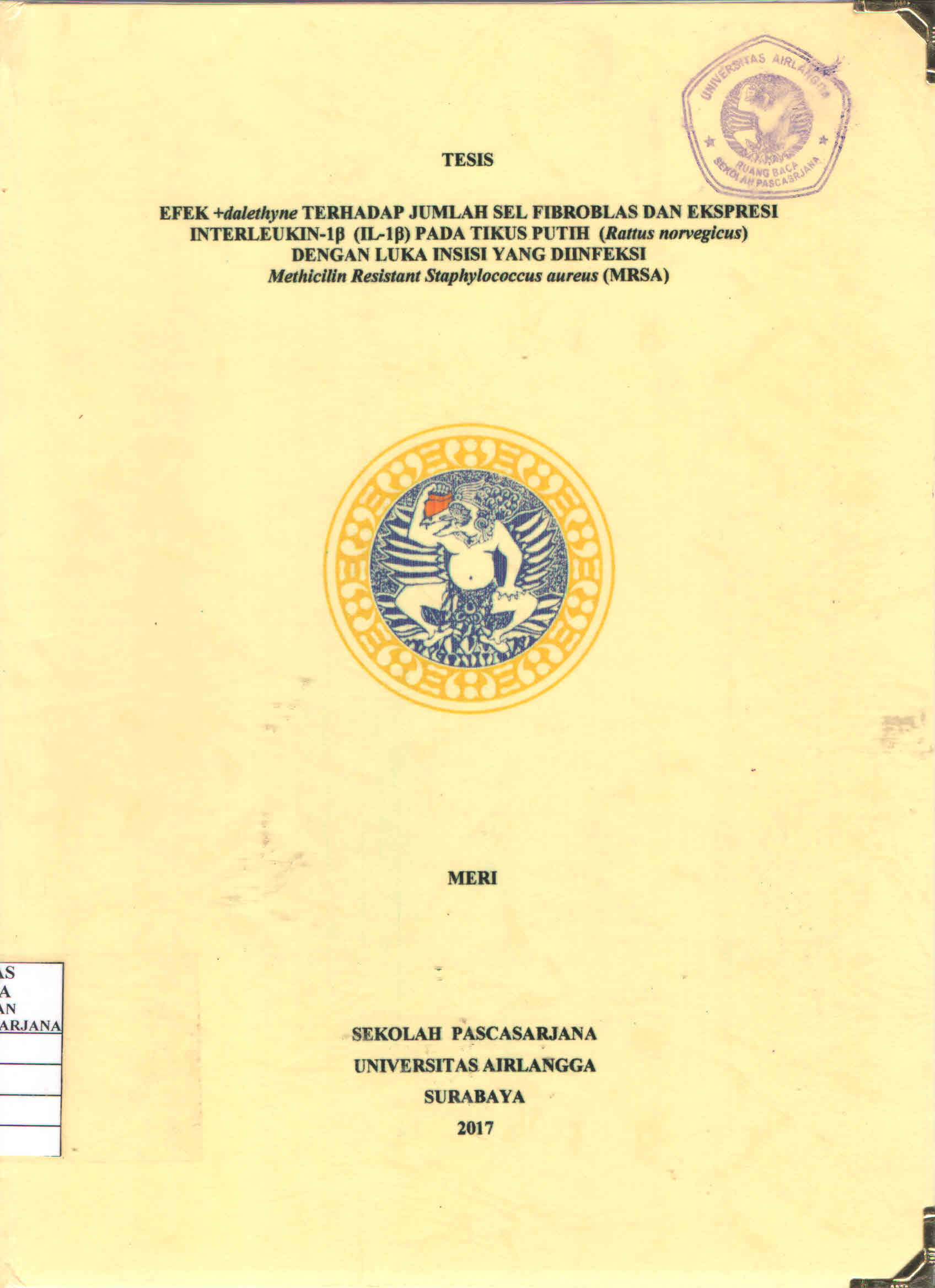 | Subjek | Imunologi Efek +dalethyne Sel Fibroblas Ekspresi Interleukin-1? (IL-1?) Luka Insisi Methicilin Resistant Staphylococcus aureus (MRSA) |