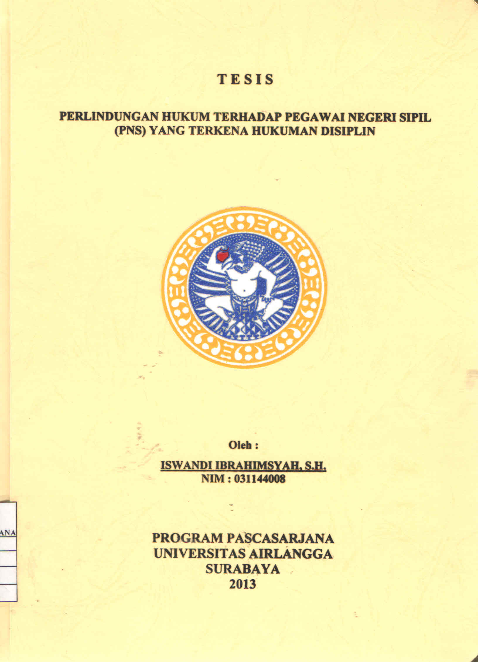 | Judul | Perlindungan Hukum Terhadap Pegawai Negeri Sipil (PNS) yang Terkena Hukuman Disiplin / Iswandi Ibrahimsyah |