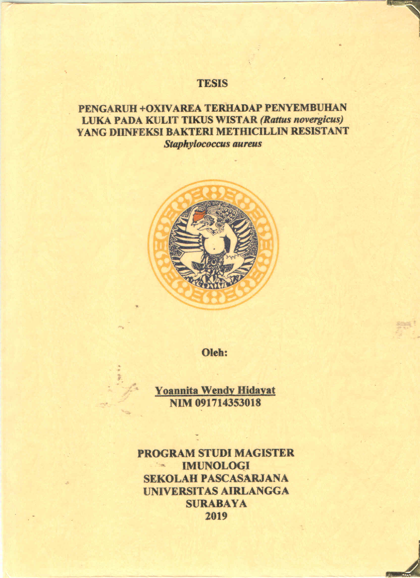| Subjek | S2 Imunologi Pengaruh +Oxivarea Penyembuhan Luka Diinfeksi Bakteri Methicillin Resistant Staphylococcus aureus |