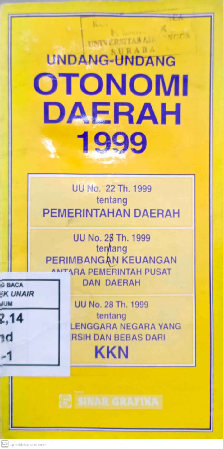 | Judul | Undang-Undang Otonomi Daerah 1999 / Indonesia. Undang-Undang. Peraturan, dsb. |