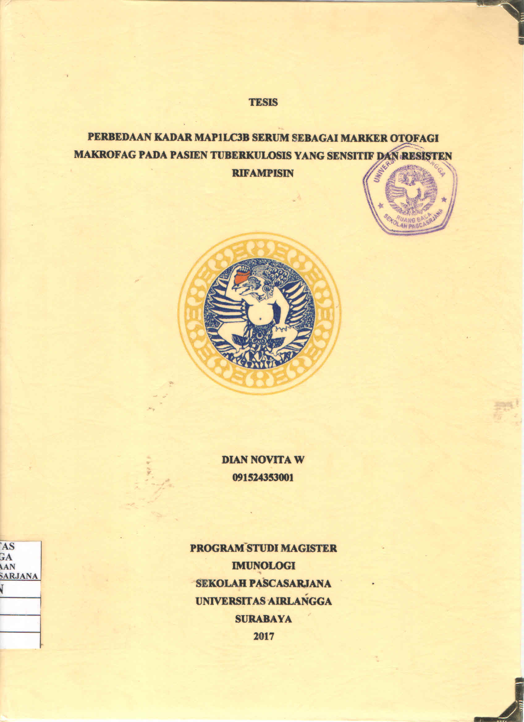 | Judul | Perbedaan Kadar MAP1LC3B Serum Sebagai Marker Otofagi Makrofag Pada Pasien Tuberkulosis yang Sensitif dan Resisten Rifampisin / Dian Novita Wulandari |