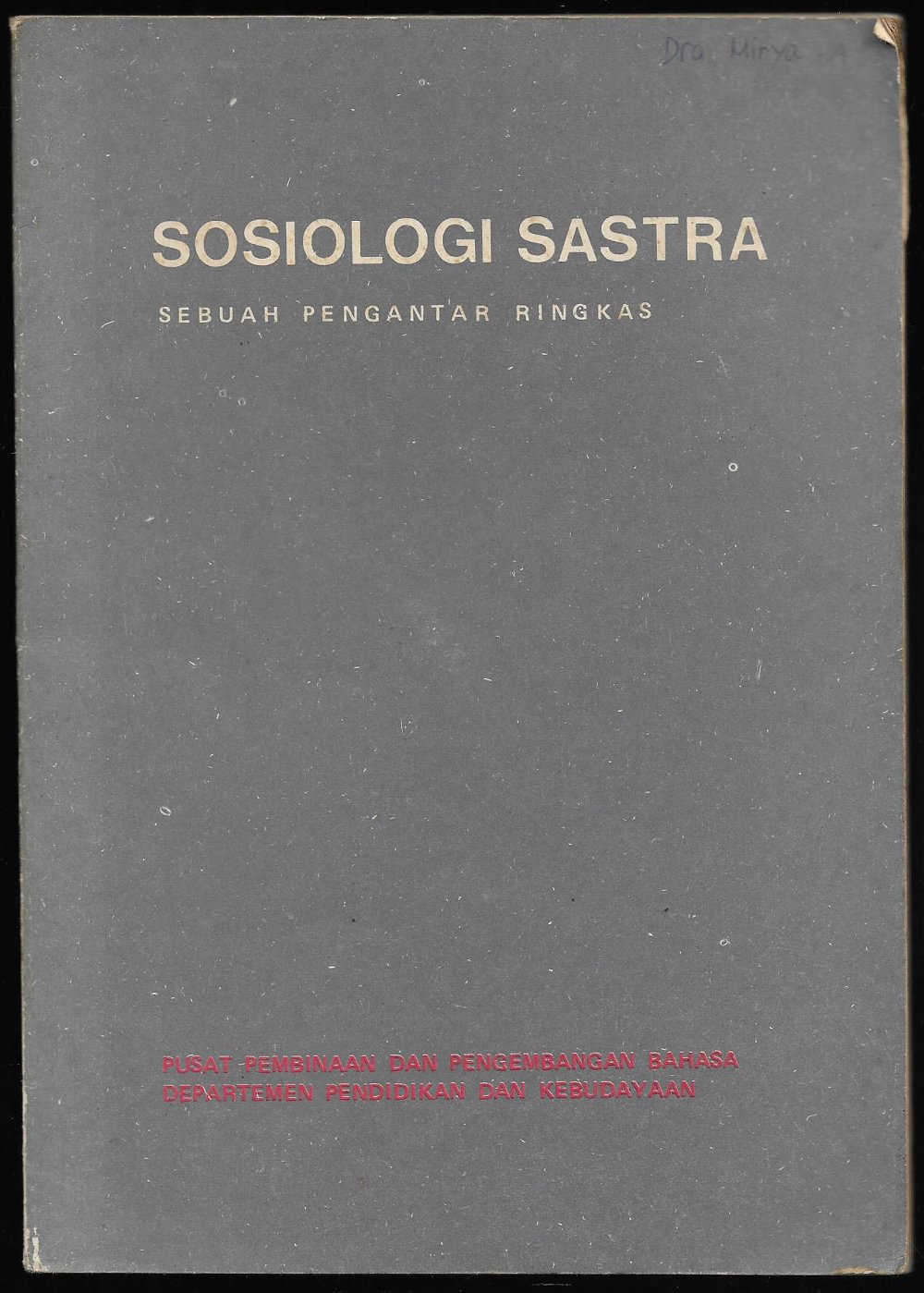 | Judul | Sosiologi sastra sebuah pengantar ringkas Sapardi Djoko Damono |