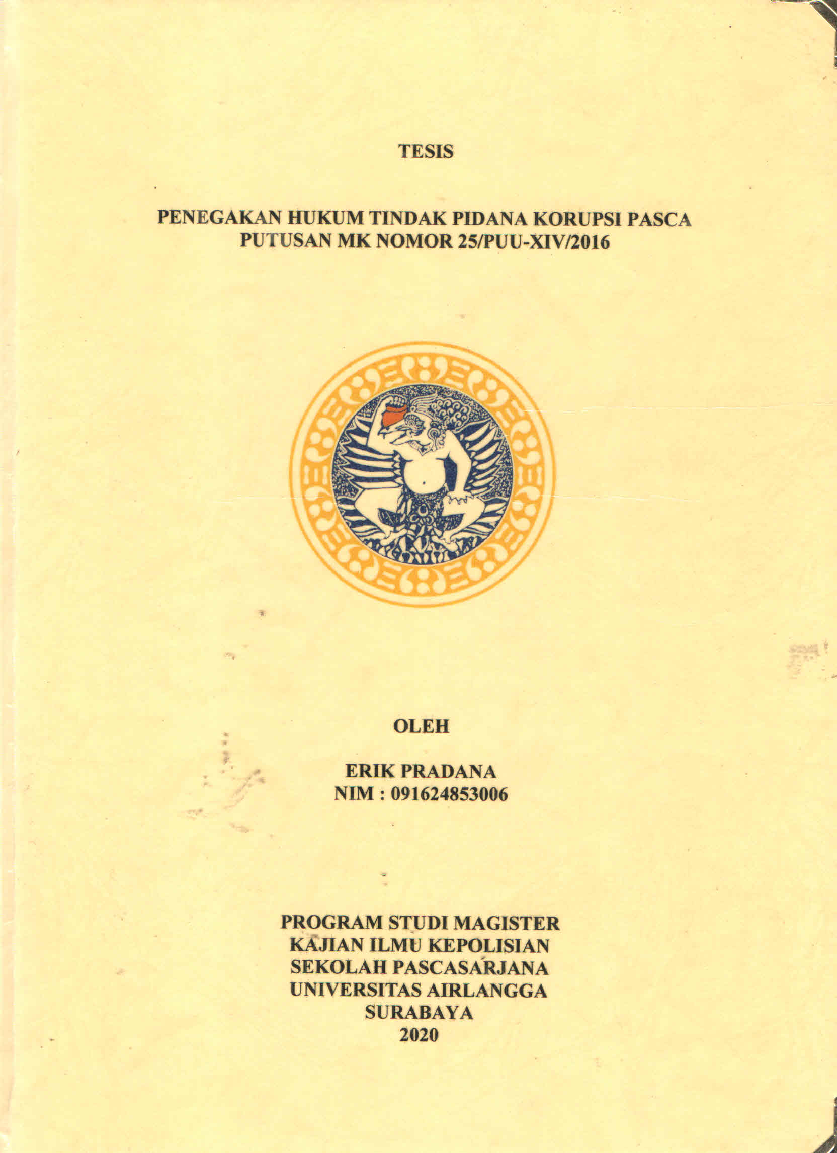 | Judul | Penegakan Hukum Tindak Pidana Korupsi Pasca Putusan MK Nomor 25/PUU-XIV/2016 / Erik Pradana |