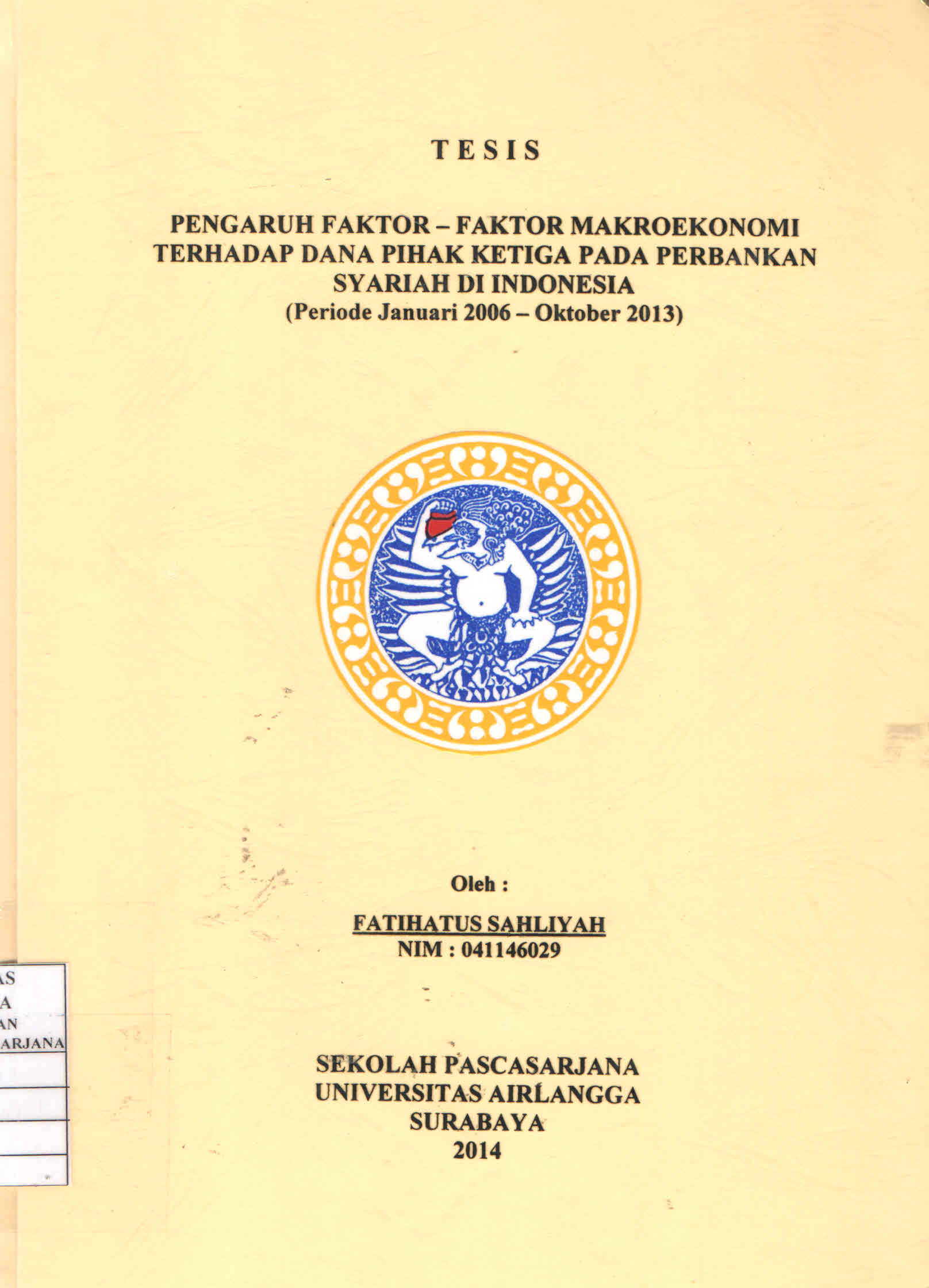 | Judul | Pengaruh Faktor-Faktor Makroekonomi Terhadap Dana Pihak Ketiga Pada Perbankan Syariah di Indonesia : Periode Januari 2006 - Oktober 2013 / Fatihatus Sahliyah |