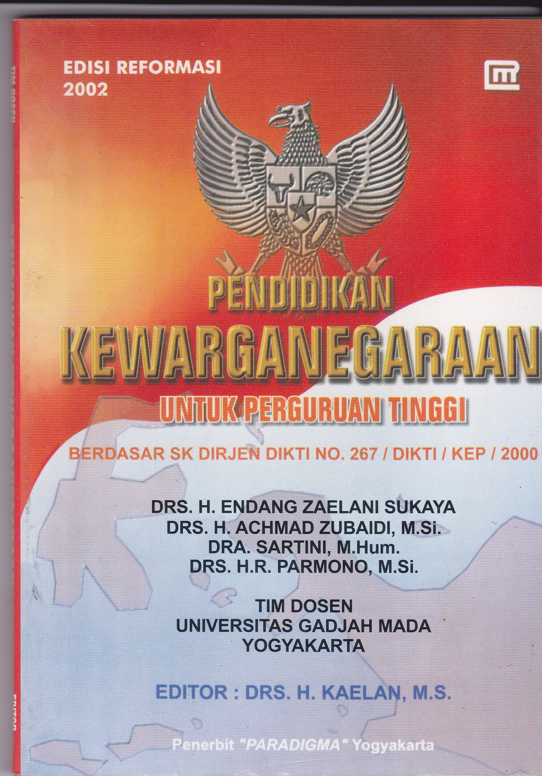 | Judul | Pendidikan kewarganegaraan Untuk Perguruan Tinggi : Berdasarkan SK DIRJEN DIKTI No. 267/DIKTI/KEP/2000 / Endang Zaelani Sukaya; Achmad Zubaidi; Sartini; R. Parmono; Editor: Kaelan |
