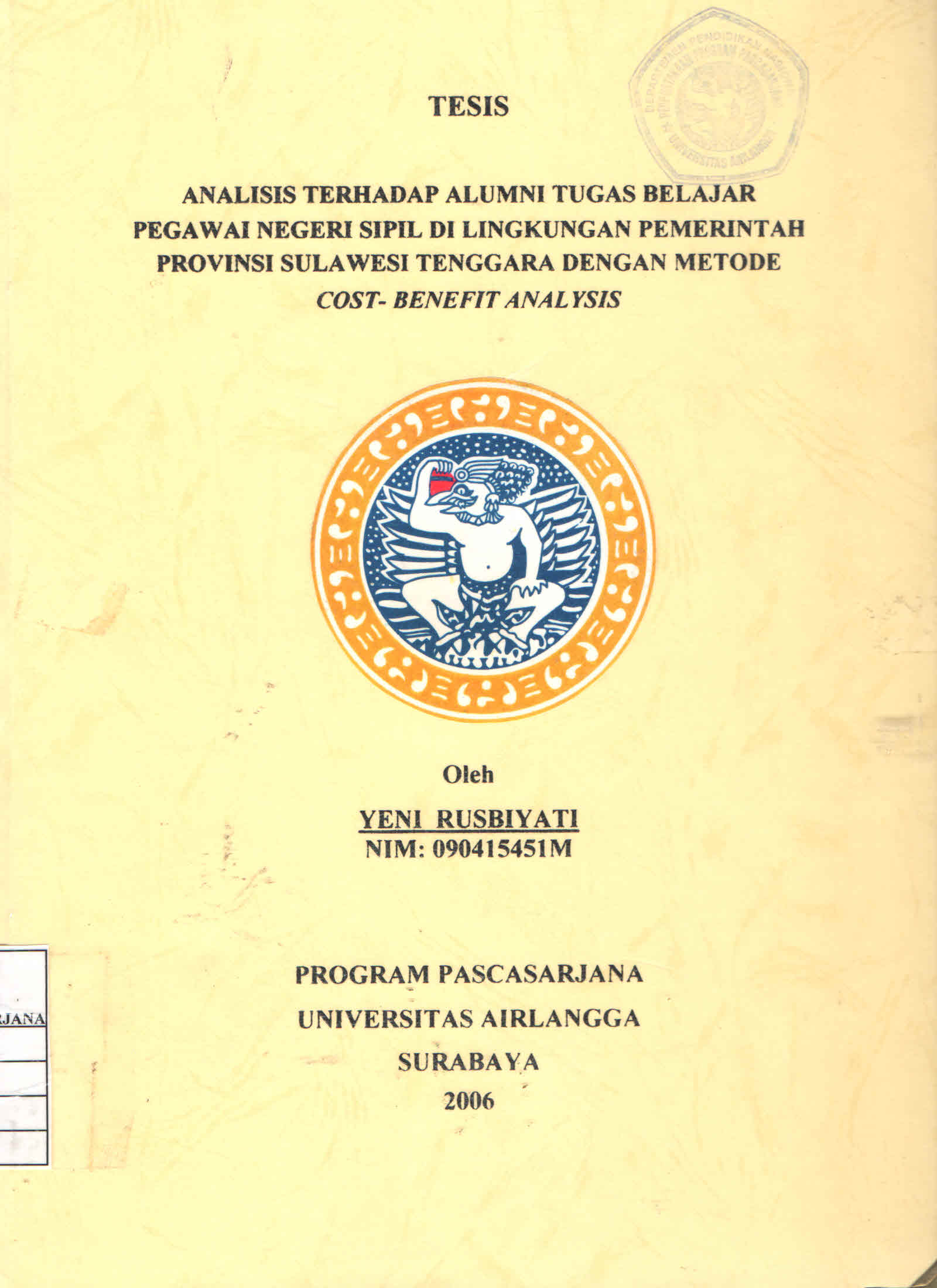 | Judul | Analisis Terhadap Alumni Tugas Belajar Pegawai Negeri Sipil di Lingkungan Pemerintah Provinsi Sulawesi Tenggara dengan Metode Cost-Benefit Analysis / Yeni Rusbiati |