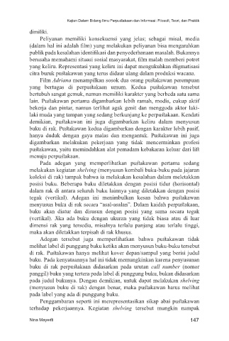 buku di rak. Pustakawan kedua digambarkan dengan karakter lebih pasif,