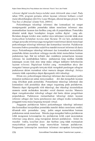 perkembangan teknologi informasi dan komunikasi tersebut. Pustakawan