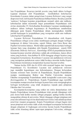 diapresiasi baik oleh Kepala Perpustakaan bahkan Rektor. Besarnya jumlah
