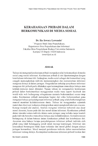 sosial yang marak informasi. Kerahasiaan pribadi di sini dipertentangkan dengan