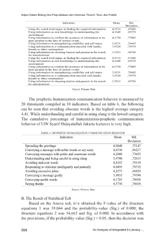 TABEL 6. PROPHETIC-HUMANIZATION COMMUNICATION BEHAVIOR