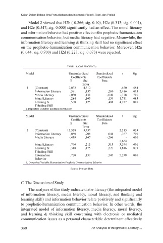 on the prophetic-humanization communication behavior. Moreover, H2a