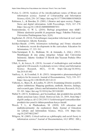 22 Pijakan dan Pengembangan Kajian Bidang Ilmu Perpustakaan...