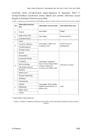 TABEL 4. PERMASALAHAN PENYULUH BERDASARKAN LITERATURE REVIEWS DAN HASIL SURVEI