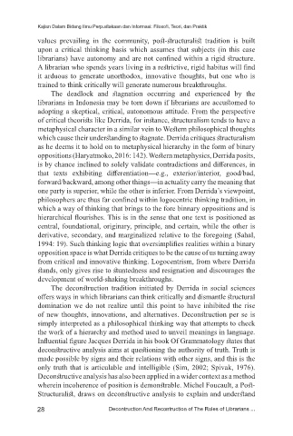 oppositions (Haryatmoko, 2016: 142). Western metaphysics, Derrida posits,