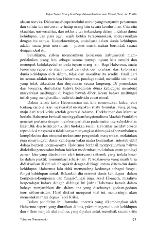 Habermas seperti yang diuraikan di atas, yakni mengenai dunia kehidupan