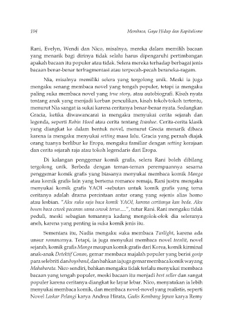Rani, Evelyn, Wendi dan Nico, misalnya, mereka dalam memilih bacaan