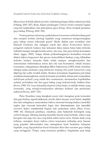 (Piliang, 2003: 287). Iklan, dalam pandangan Cultural Studies menjadi bagian