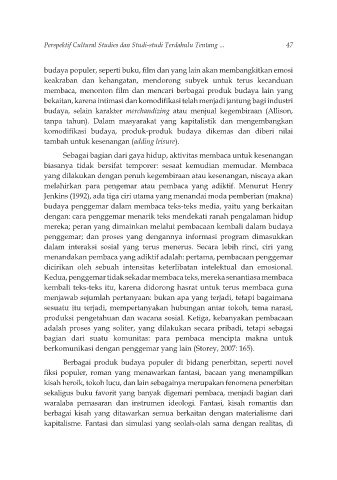 membaca, menonton fi lm dan mencari berbagai produk budaya lain yang