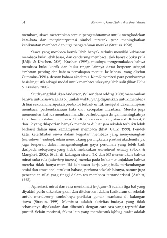 kenikmatan membaca dan juga pengetahuan mereka (Strauss, 1998).