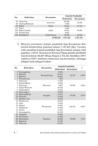 b. Mencari persentase jumlah penduduk tiap kecamatan dari