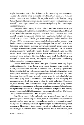 Fasick (1984) menemukan bahwa anak lebih menyukai bacaan yang