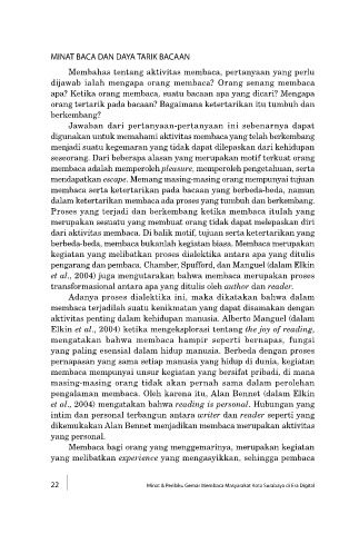 pengarang dan pembaca. Chamber, Spufford, dan Manguel (dalam Elkin
