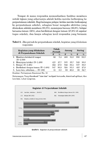 Tabel 5. Jika pernah ke perpustakaan sekolah, kegiatan yang dilakukan