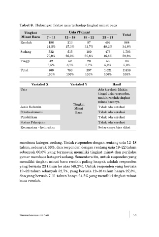 Tabel 8. Hubungan faktor usia terhadap tingkat minat baca