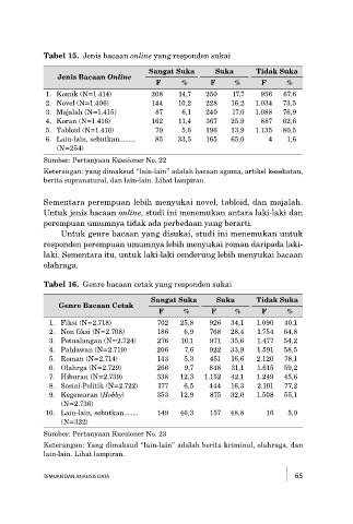 Tabel 16. Genre bacaan cetak yang responden sukai